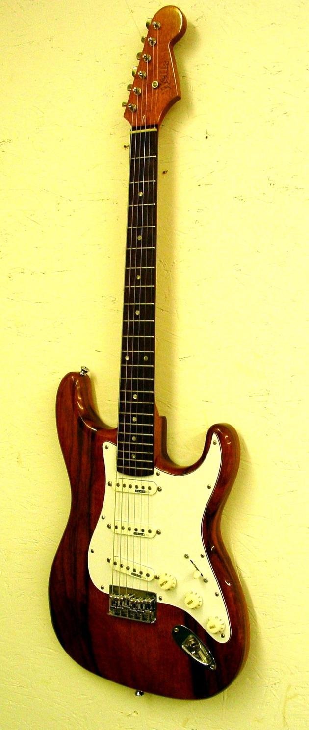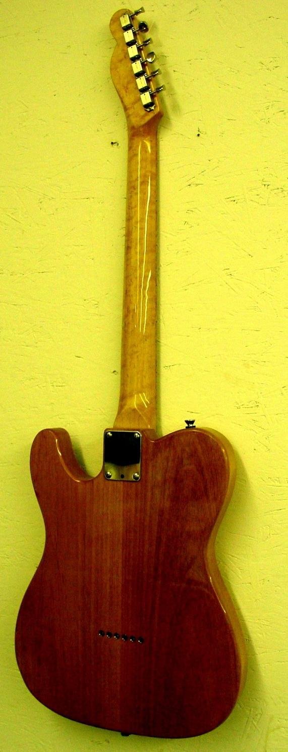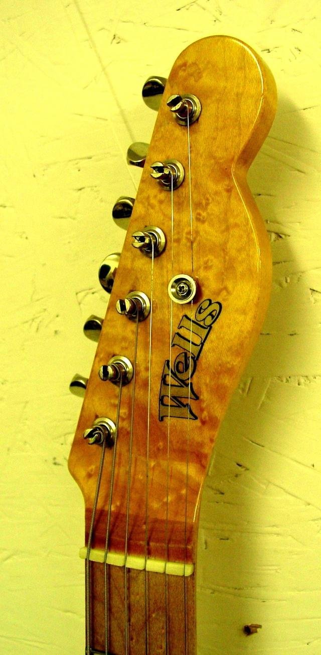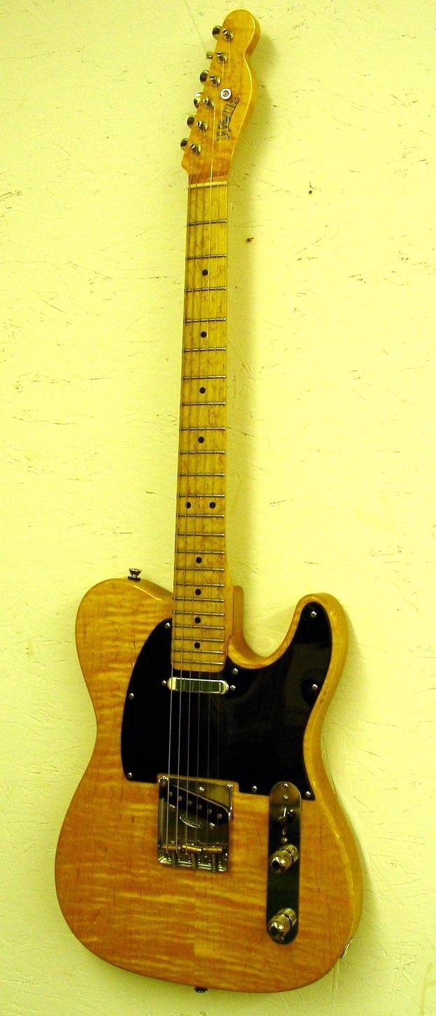 Made of African Black Limba. Isn’t black limba beautiful wood? The neck is made of white limba just like the old Flying V’s. A heavily flamed maple top adorns this Telecaster style instrument. Flamed maple neck and ash body. Look at that neck!