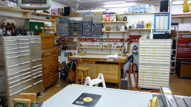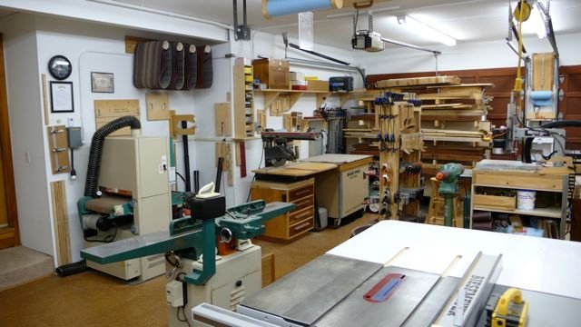 | Welcome to the new guitar shop. The move from Virginia to Massachusetts is over (11/07)! Thank heavens! I don’t think I want to do that again. I want to extend my sincere thanks to John Coleman and John Redmon, without whose help it would not have been possible. Their extensive help, and a 26 ft. U-Haul truck, made it happen. So here are some photos of what it now looks like. The shop includes a cork floor (no more back aches!) and plenty of lighting. What you do not see is a huge attic in which all of the molds and other seldom used items are stored. I look forward to building some wonderful instruments here! See the changes in the shop as of August 2009 here. |