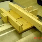 There is one more piece that constitutes the jig. It is a stop that allows the user to set the position of the tenon exactly. The biggest problem in cutting the tenon on the table saw is to make sure that both “cheeks” are exactly the same. The stop, and, utilizing both the front and back fences of the jig takes care of it.
