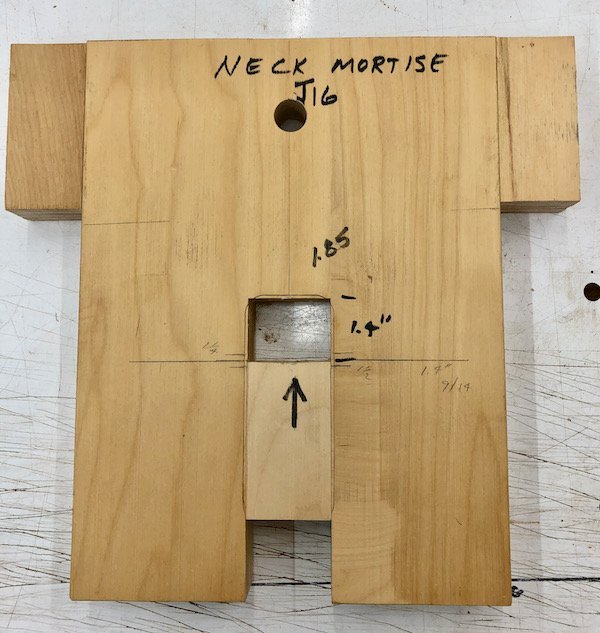 Using a top bearing flush cutting router bit, rout the mortise in the body 1.85” wide. .290-.300 deep. The body should look like the first picture in this article. Set the body aside.