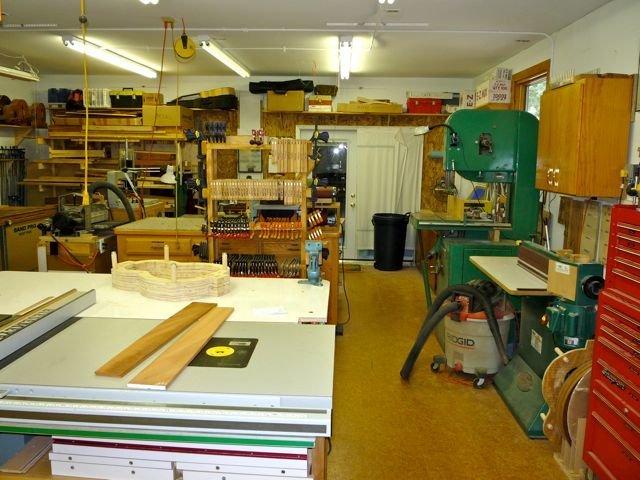 Here are some photos of the latest version of my shop here in Massachusetts. If you compare the shop to the pictures of a year and a half ago I think that you will see some significant differences. It is always amazing to me how a shop changes as you work in it!