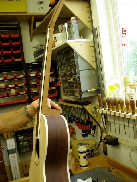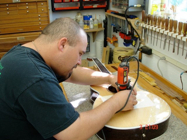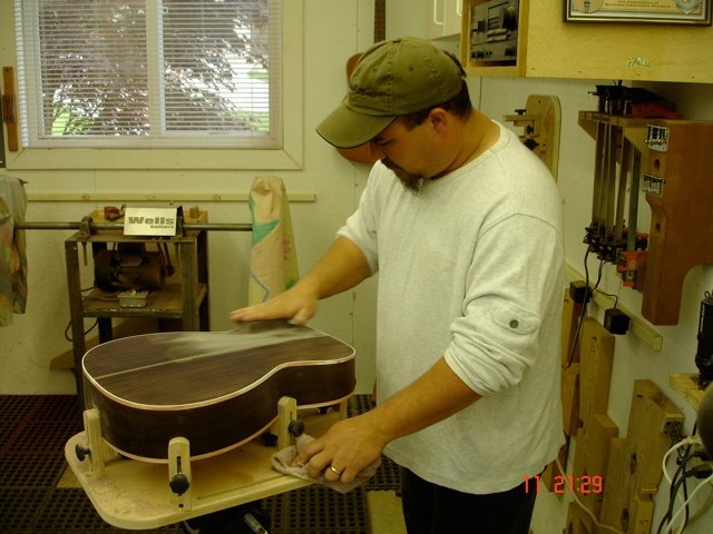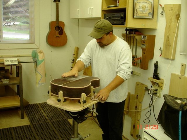 This is a pictorial essay of Kahle M. building his OM guitar at the Wells Workshop. Kahle wanted to learn how to build a guitar. Because he lives close he continued his study to include the finishing process. He took excellent photos of the process and has agreed to let me share them with those who are interested. Thanks to Kahle for building a great guitar!