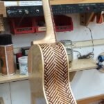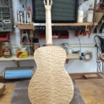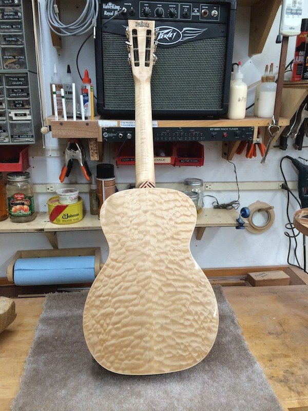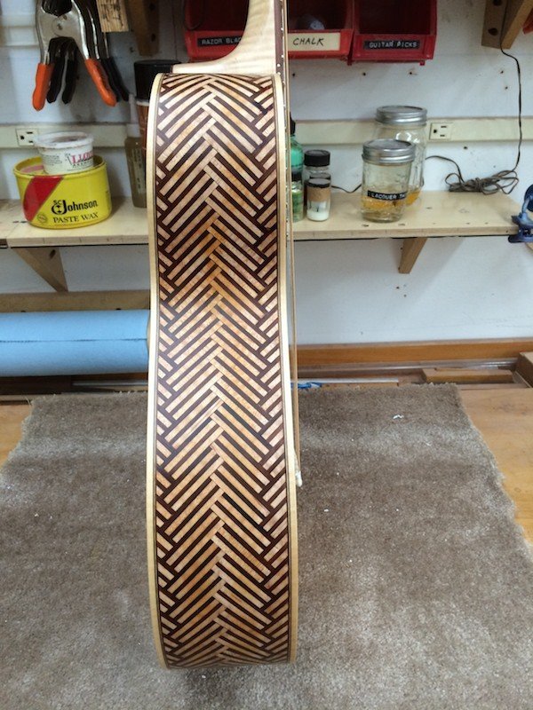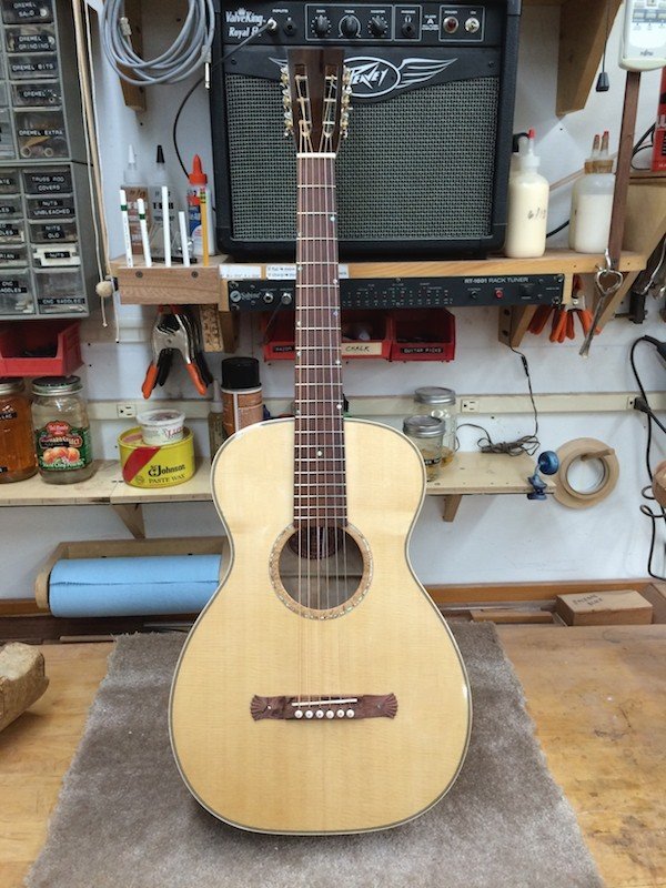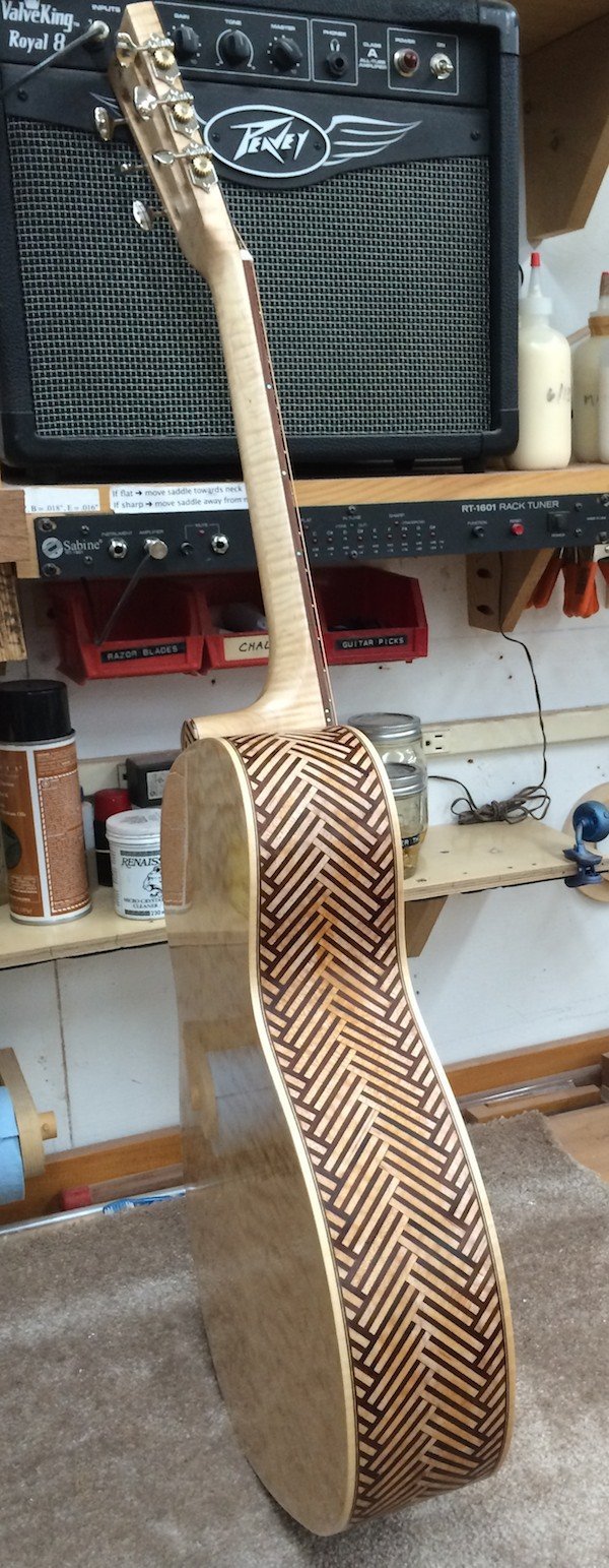 Many of the early instruments featured this type of construction (multi-wood construction) so here is my take on it! The guitar is loud and very sweet sounding. I must admit that I never expected it to sound so good with the unusual wood combination and side material.