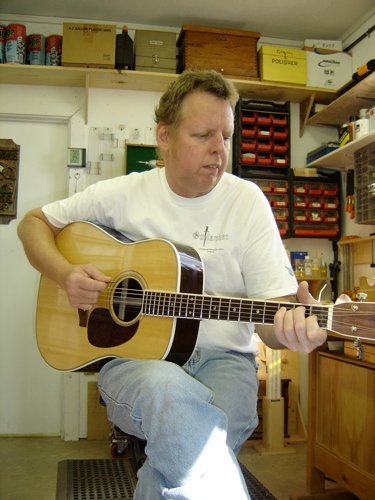 This past year I had two students who built their guitars together. John R. and Dean L. both wanted to build Dreadnaught guitars. Dean was building a guitar to give his father as a late Xmas present. John is a good musician who wanted a very specific instrument that would respond well to his brand of Country music. They were both great students and I enjoyed working with them. Dean took these photographs of most of the processes and just gave me a CD of all his pictures. He agreed that I could share the photos on this website. They were Saturday students and their guitars took about four months to complete. John is thrilled with his instrument and Dean gave his Dad that once in a lifetime gift! Thanks to Dean for taking these photos!