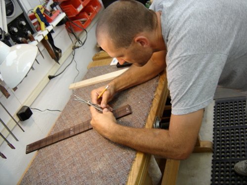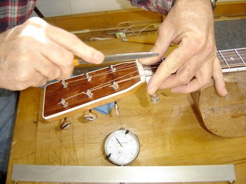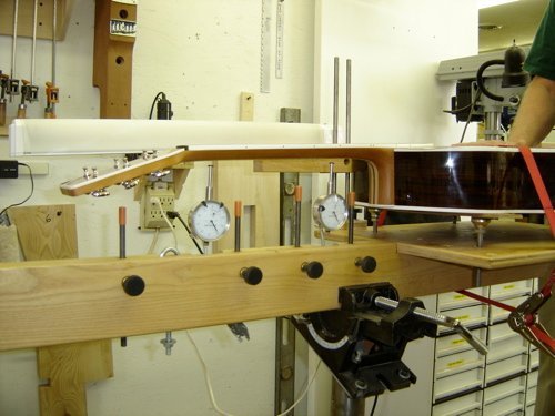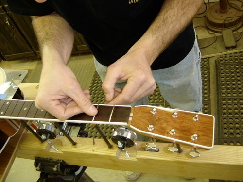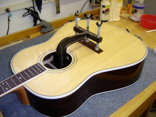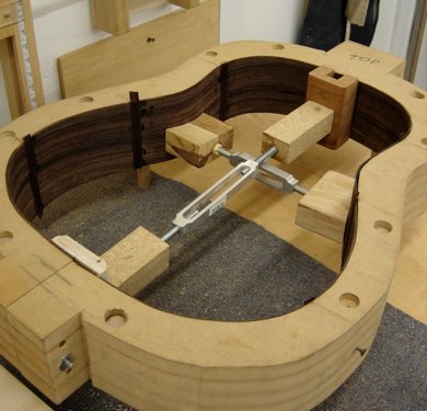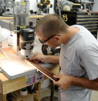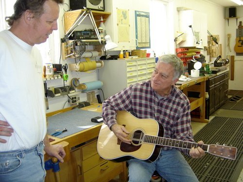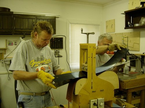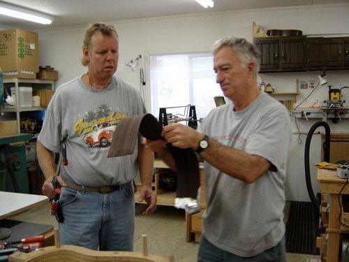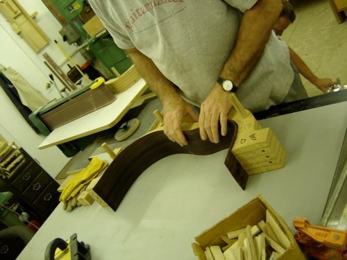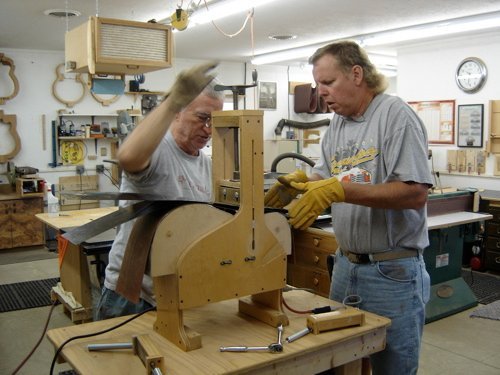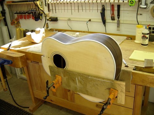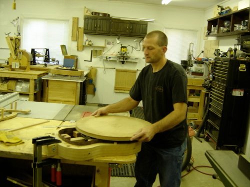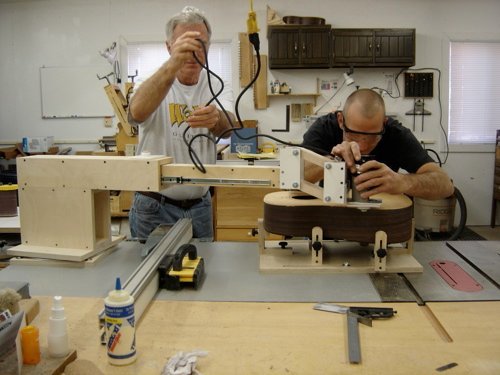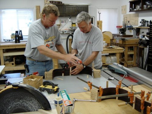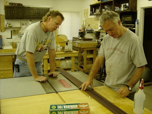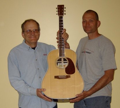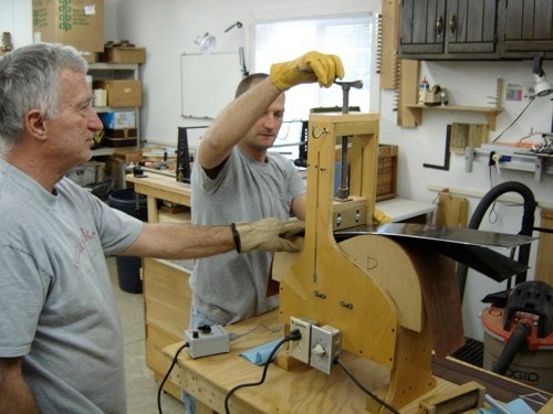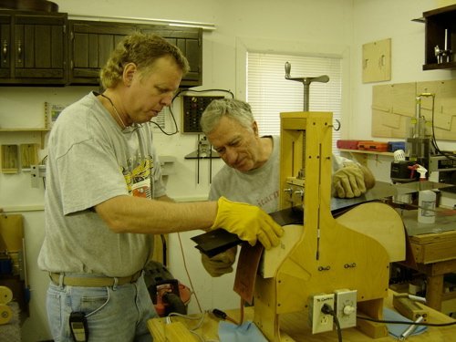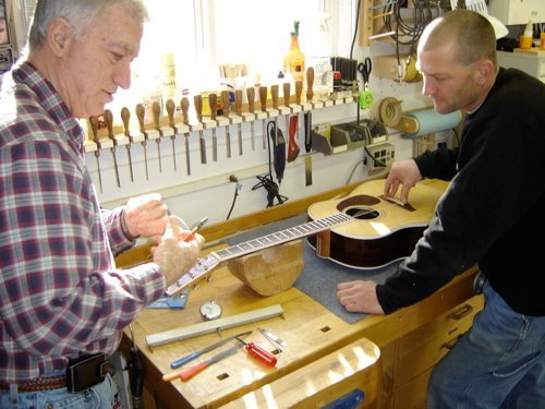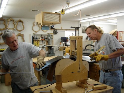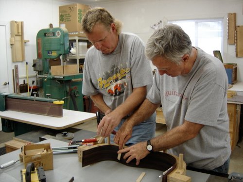 This past year I had two students who built their guitars together. John R. and Dean L. both wanted to build Dreadnaught guitars. Dean was building a guitar to give his father as a late Xmas present. John is a good musician who wanted a very specific instrument that would respond well to his brand of Country music. They were both great students and I enjoyed working with them. Dean took these photographs of most of the processes and just gave me a CD of all his pictures. He agreed that I could share the photos on this website. They were Saturday students and their guitars took about four months to complete. John is thrilled with his instrument and Dean gave his Dad that once in a lifetime gift! Thanks to Dean for taking these photos!